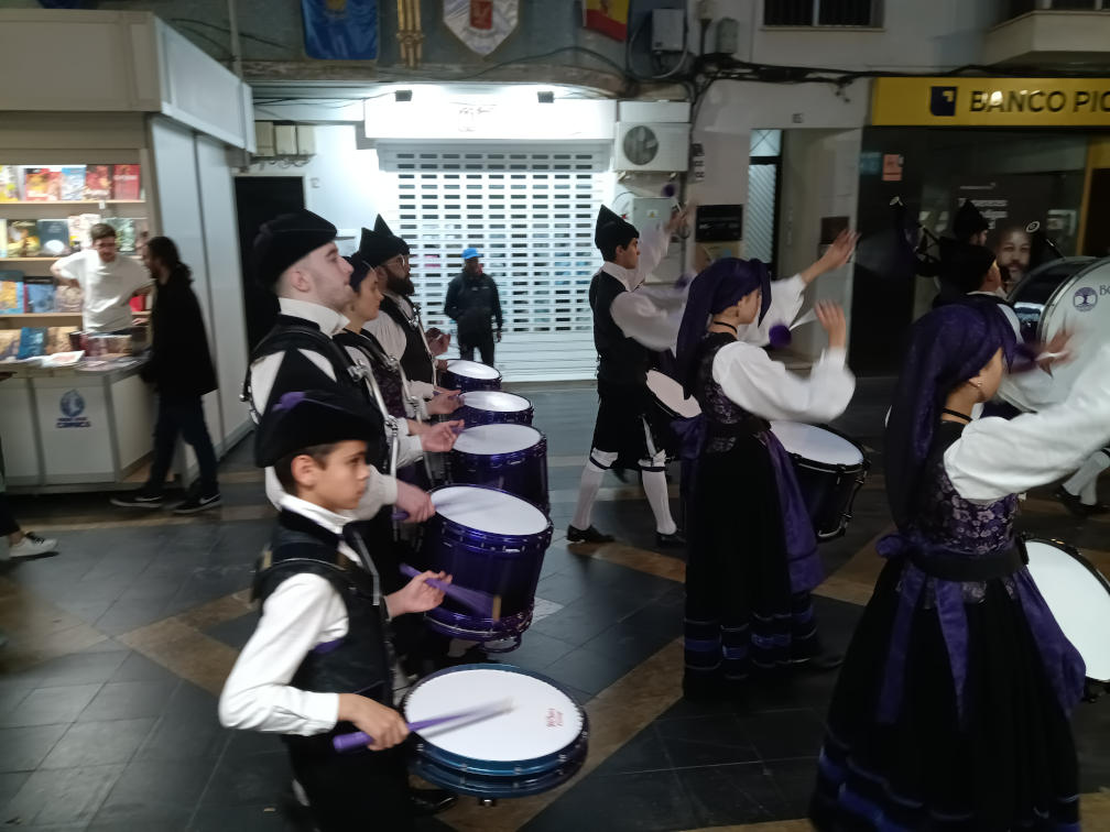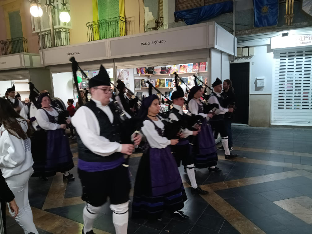 Nos comenta Sergio que estuvo muy ocupado con las firmas y no le dio tiempo a hacer muchas más fotos. Pero hubo una excepción: el momento en que no se podía firmar porque pasaba un grupo de gaiteros y tamborileros a todo trapo. Aquí la demostración gráfica: